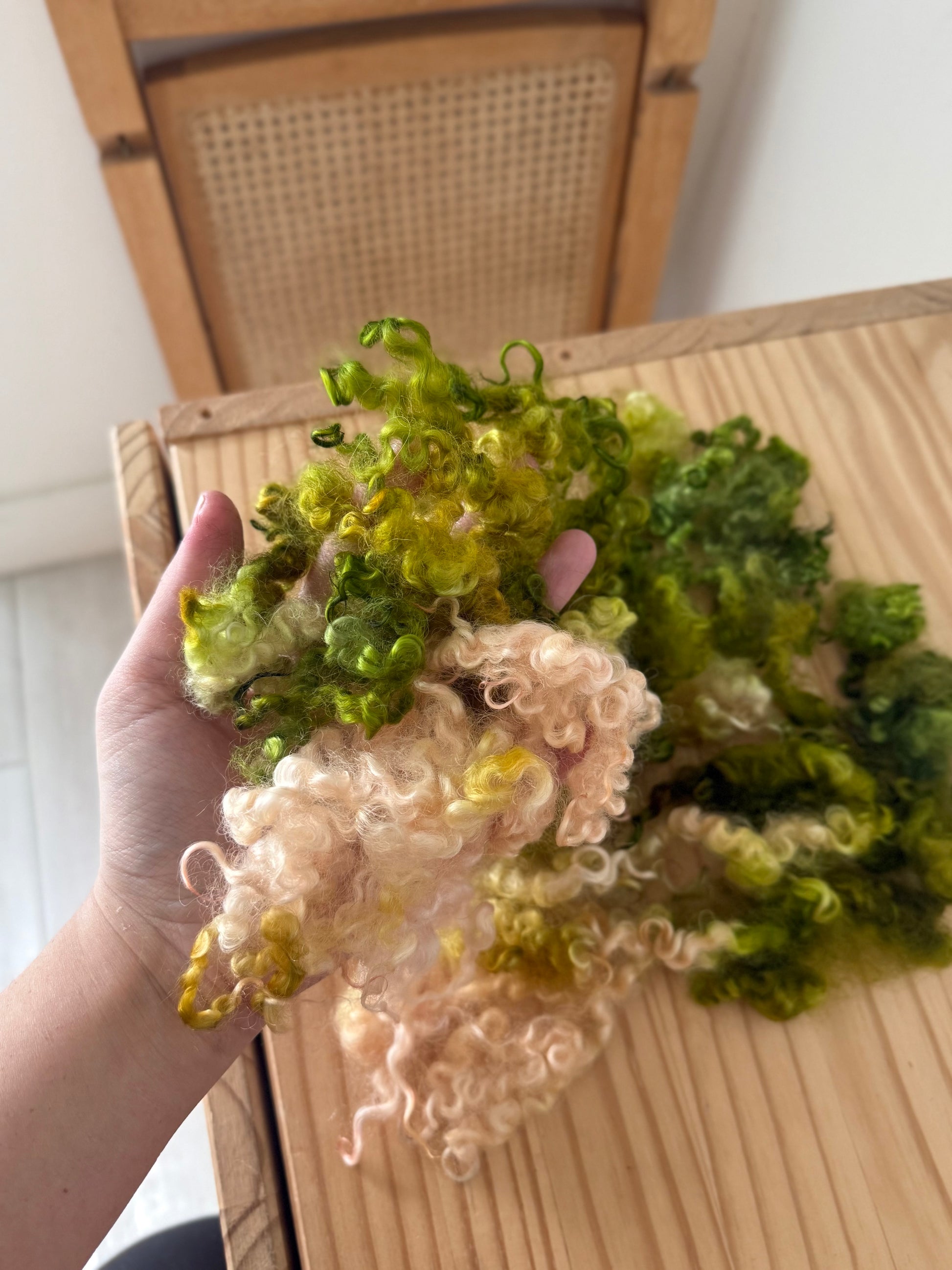 bluefaced leicester x wensleydale cross locks - you get the best of both breeds with this fleece; structured, individual curls similar to Wensleydale, and soft, small curls just like BFL.