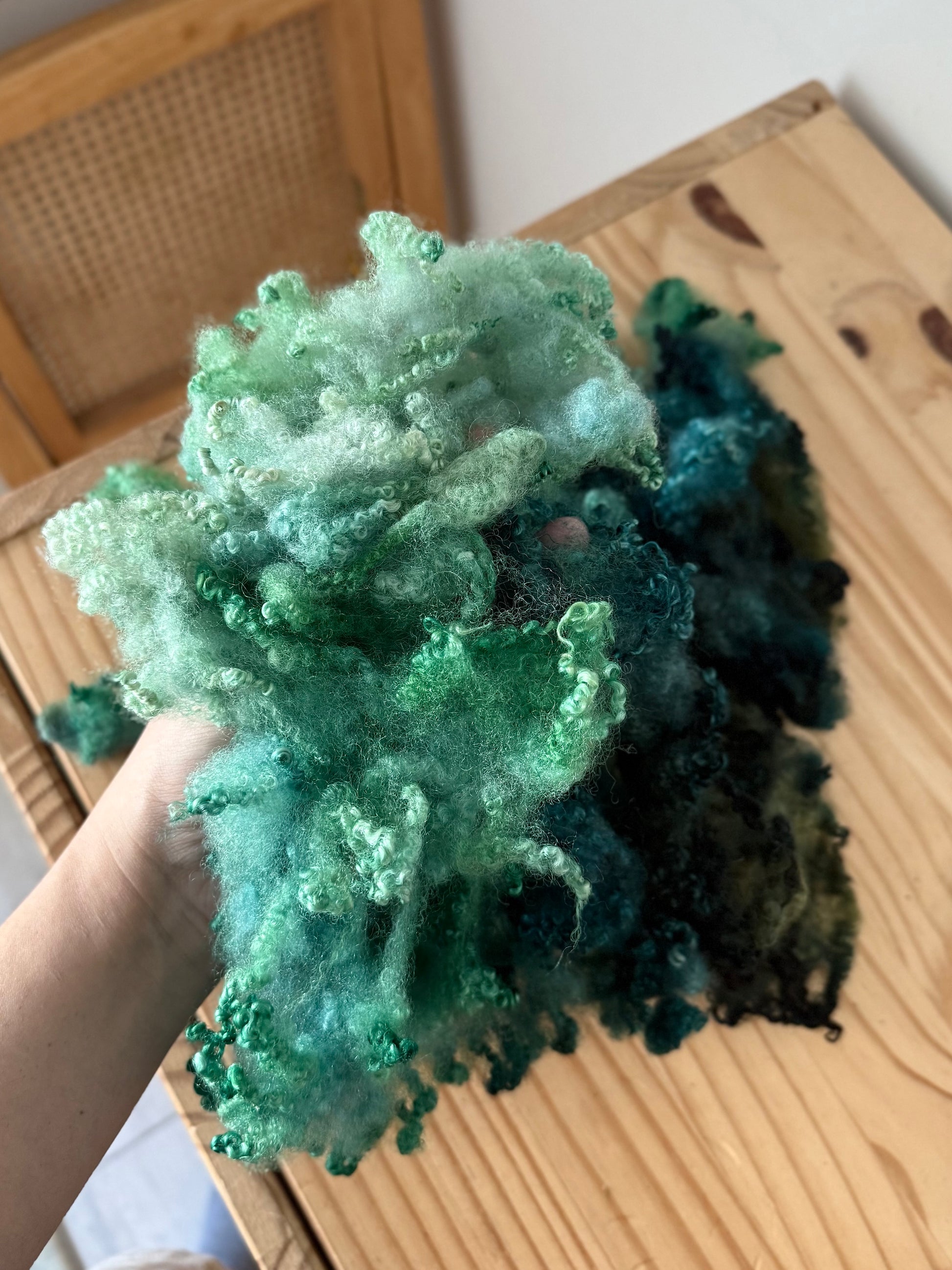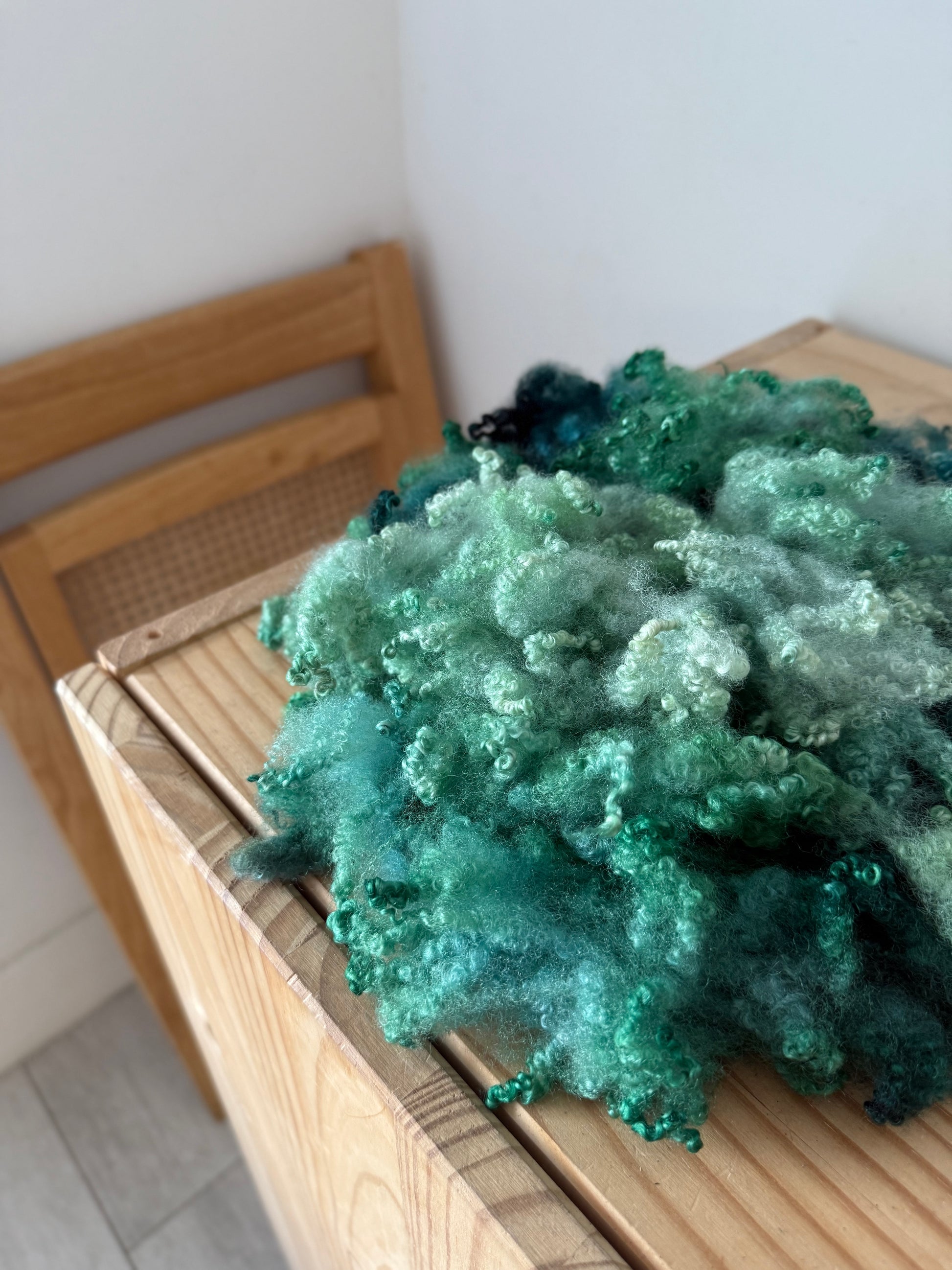 bluefaced leicester locks - these bfl curls are extra fluffy and soft! you can use them to card into your batts, embellish your yarns, felt into projects, and so much more!