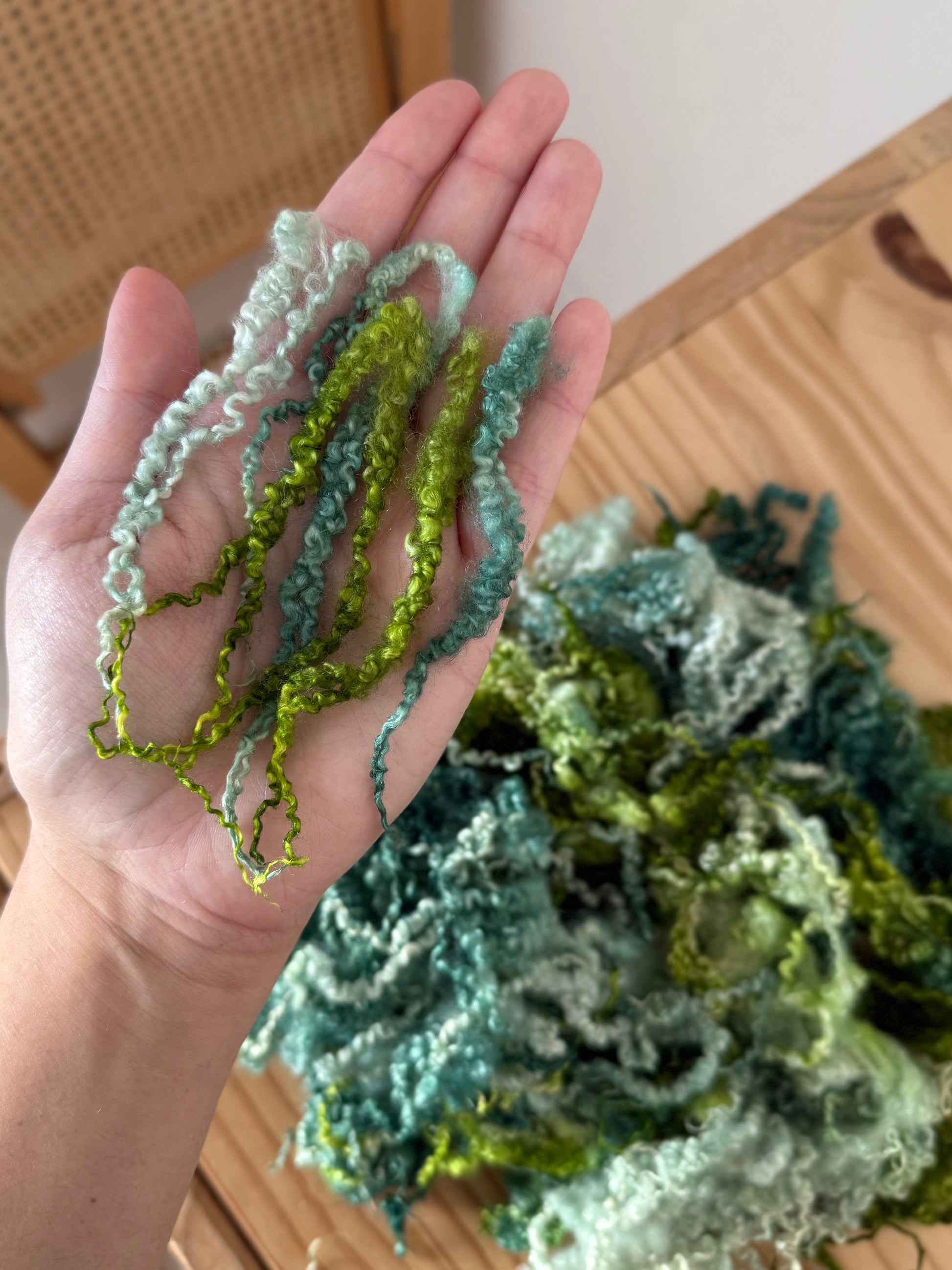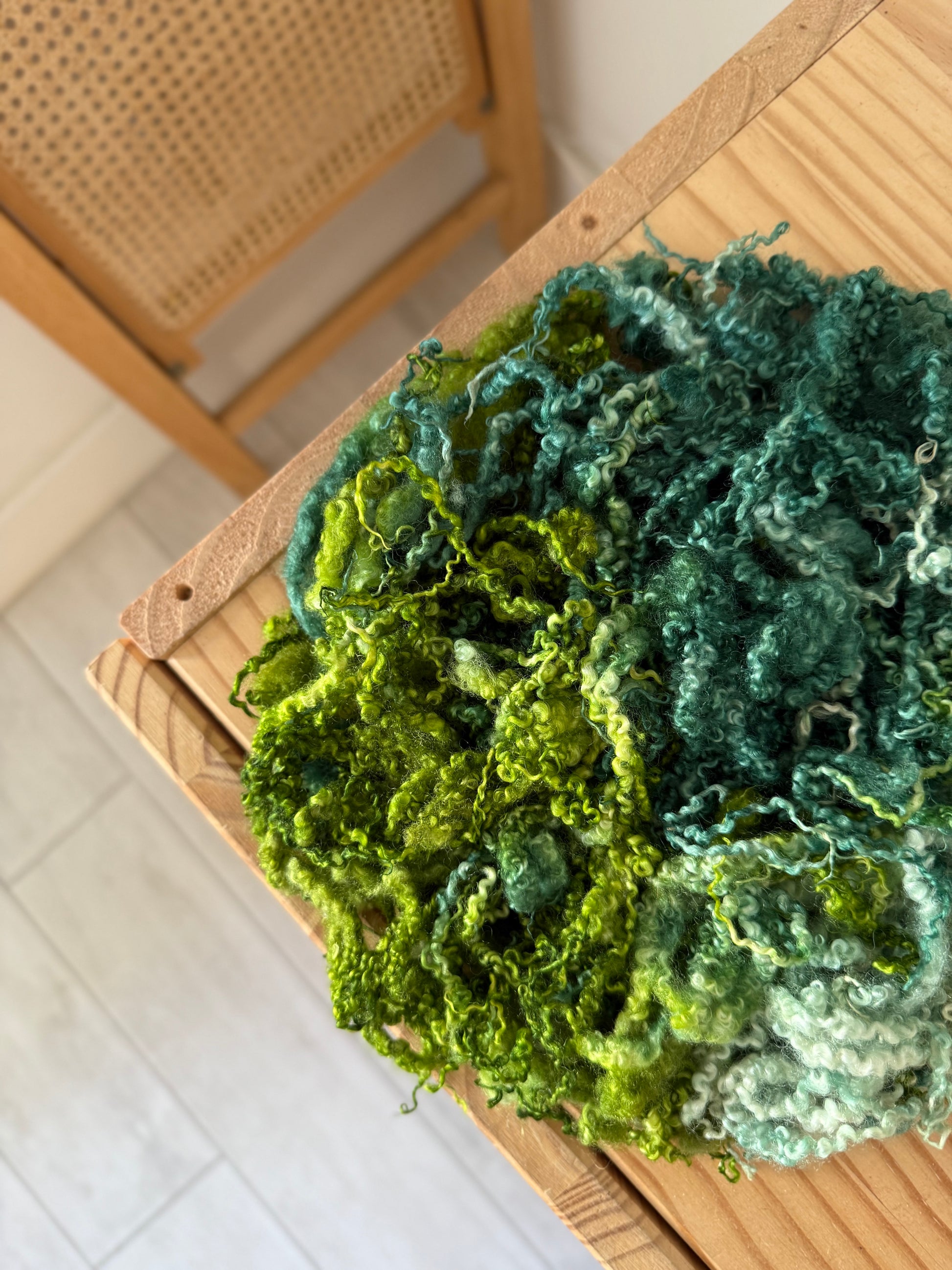 BFL (bluefaced leicester) locks - this fleece is made up of beautiful extra crimpy uniform locks. they’re easy to pull apart and use as individual strands with a staple length of 5-6”. these can be incorporated in countless different crafts and projects, get creative!
