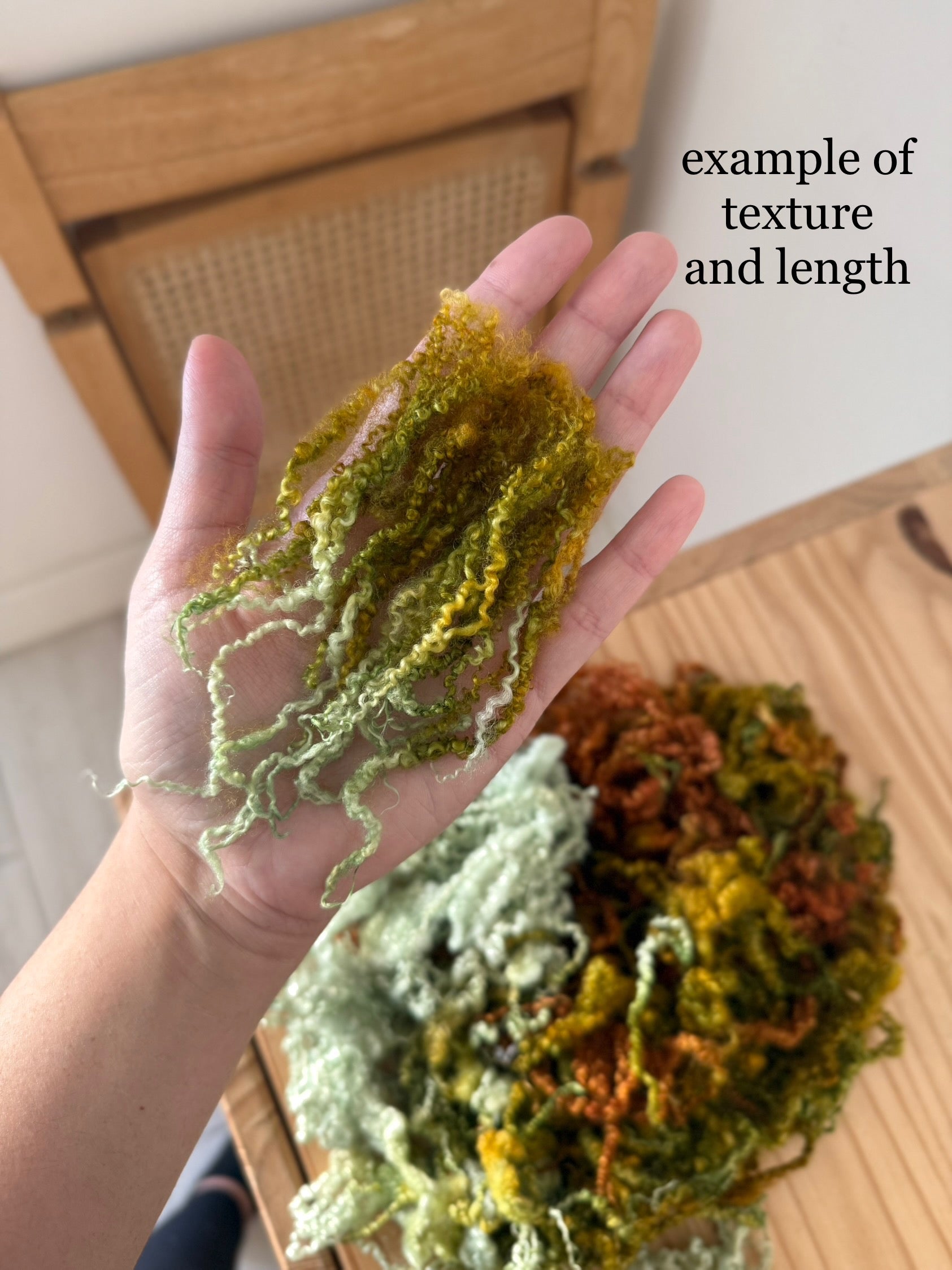 BFL (bluefaced leicester) locks - this fleece is made up of beautiful extra crimpy uniform locks. they’re easy to pull apart and use as individual strands with a staple length of 5-6”. these can be incorporated in countless different crafts and projects, get creative!