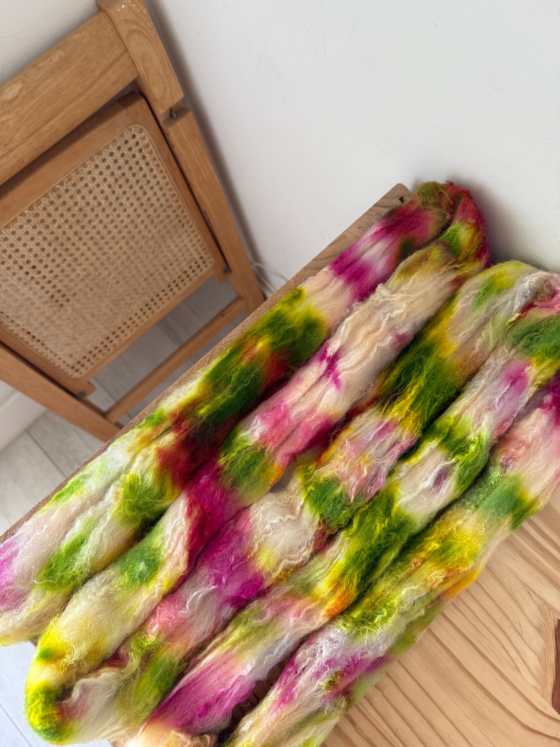 4 oz of hand dyed 70% merino wool 30% tussah silk