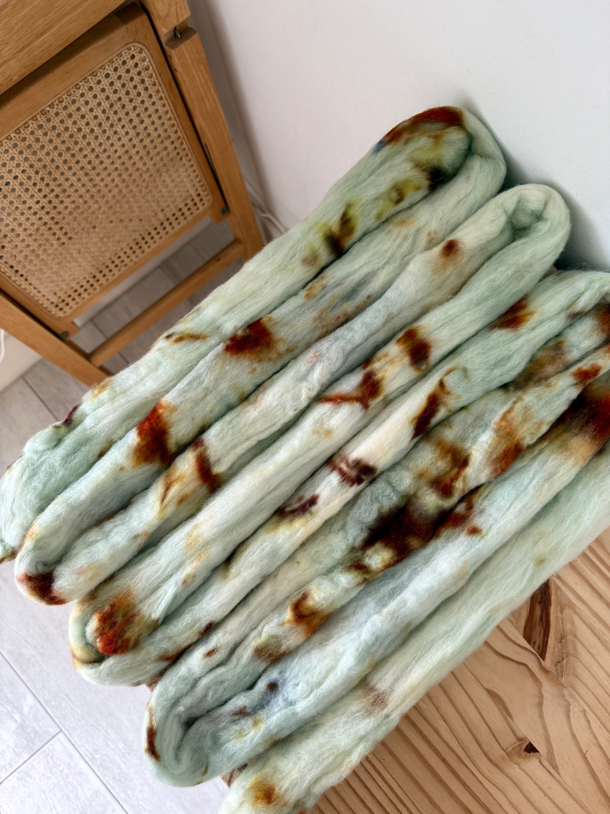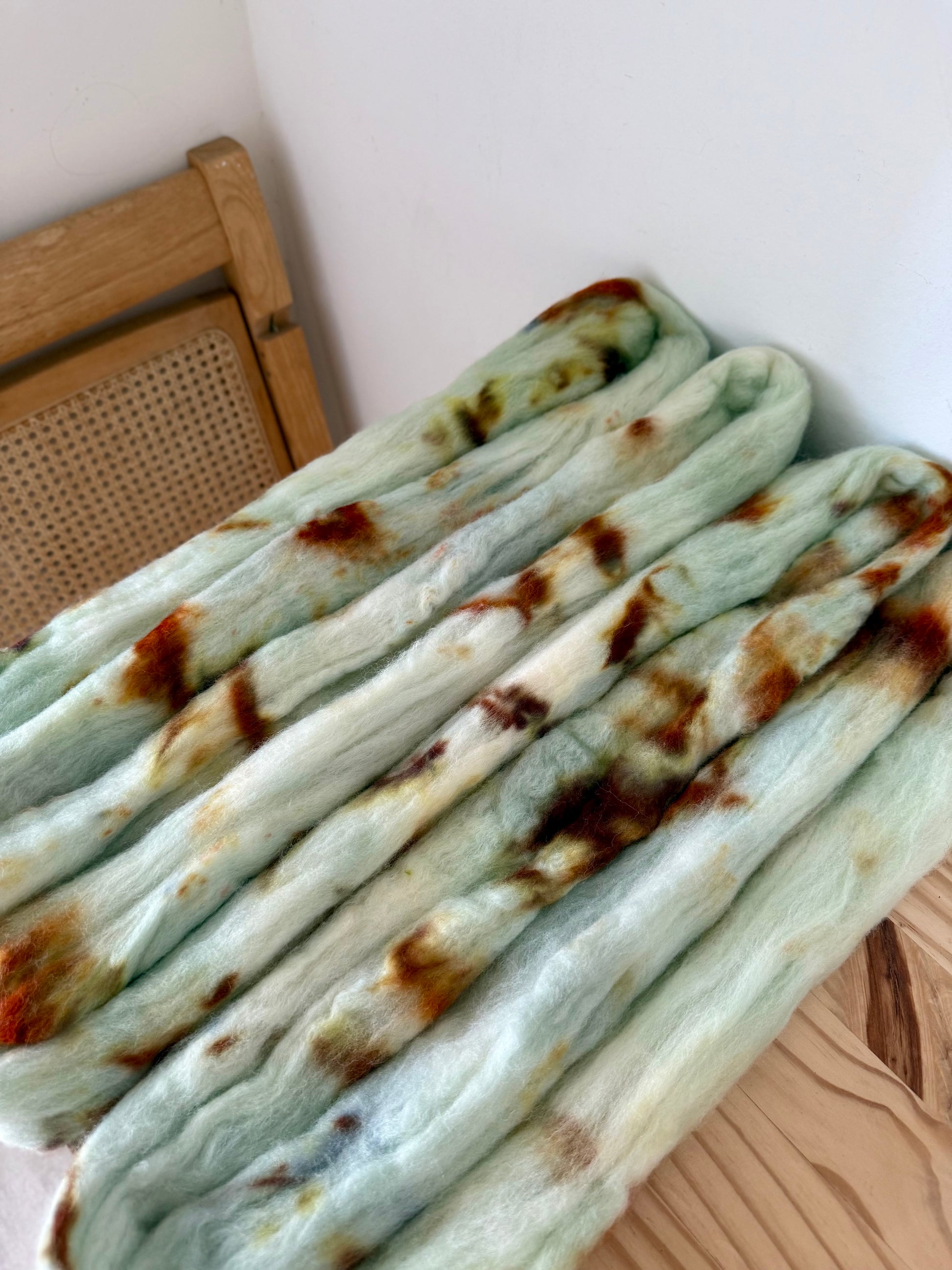 -there may be slight color bleeds when washed, especially with red and purple tones. these fibers have been fully exhausted with dye and rinsed to the best of my abilities.