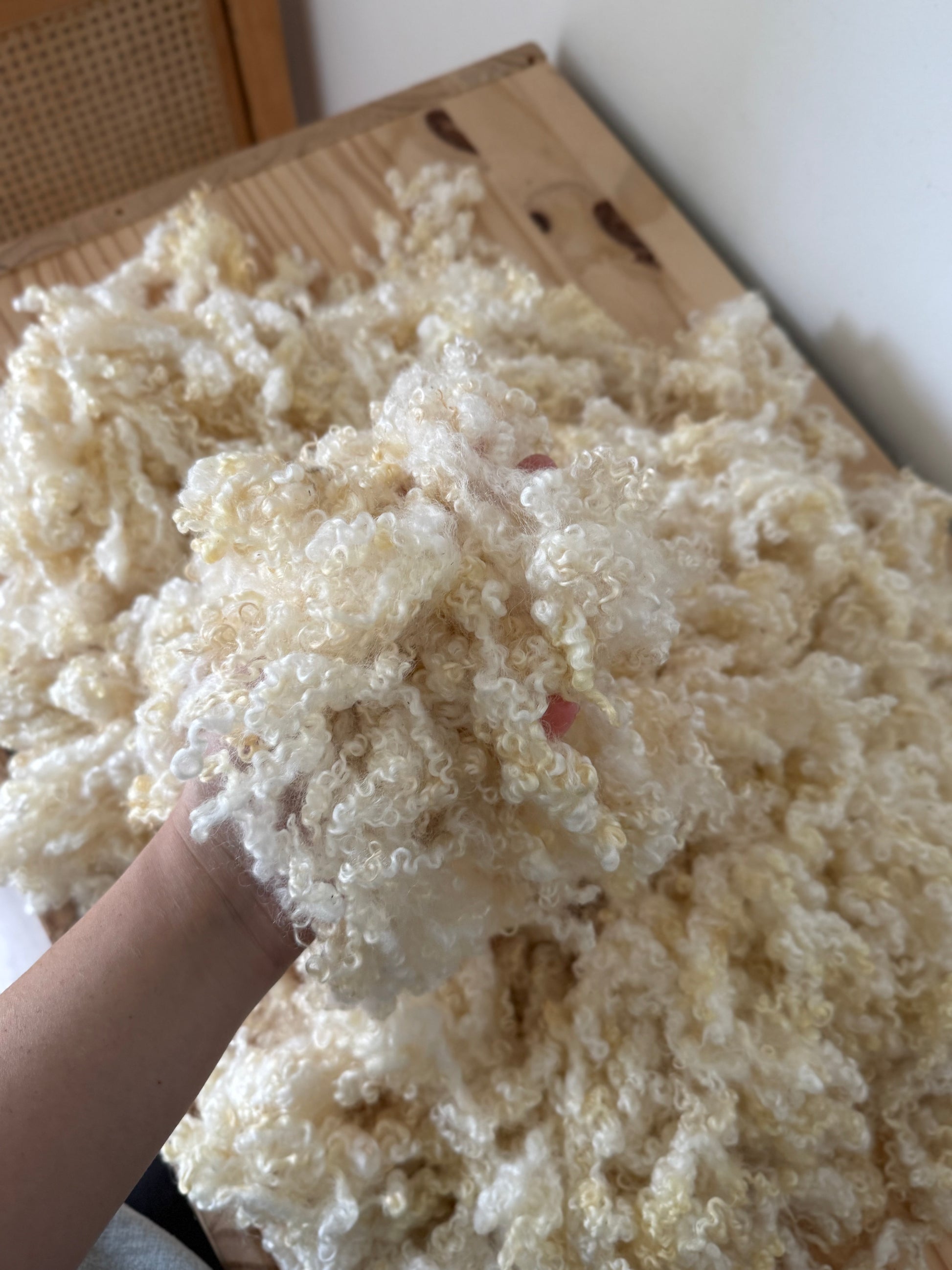 This is one of the most unique cross breeds with the most beautiful fleece — bluefaced leicester/border leicester/romney/rambouillet locks - super soft and extra tiny individual curls that add so much texture and fun to any project!