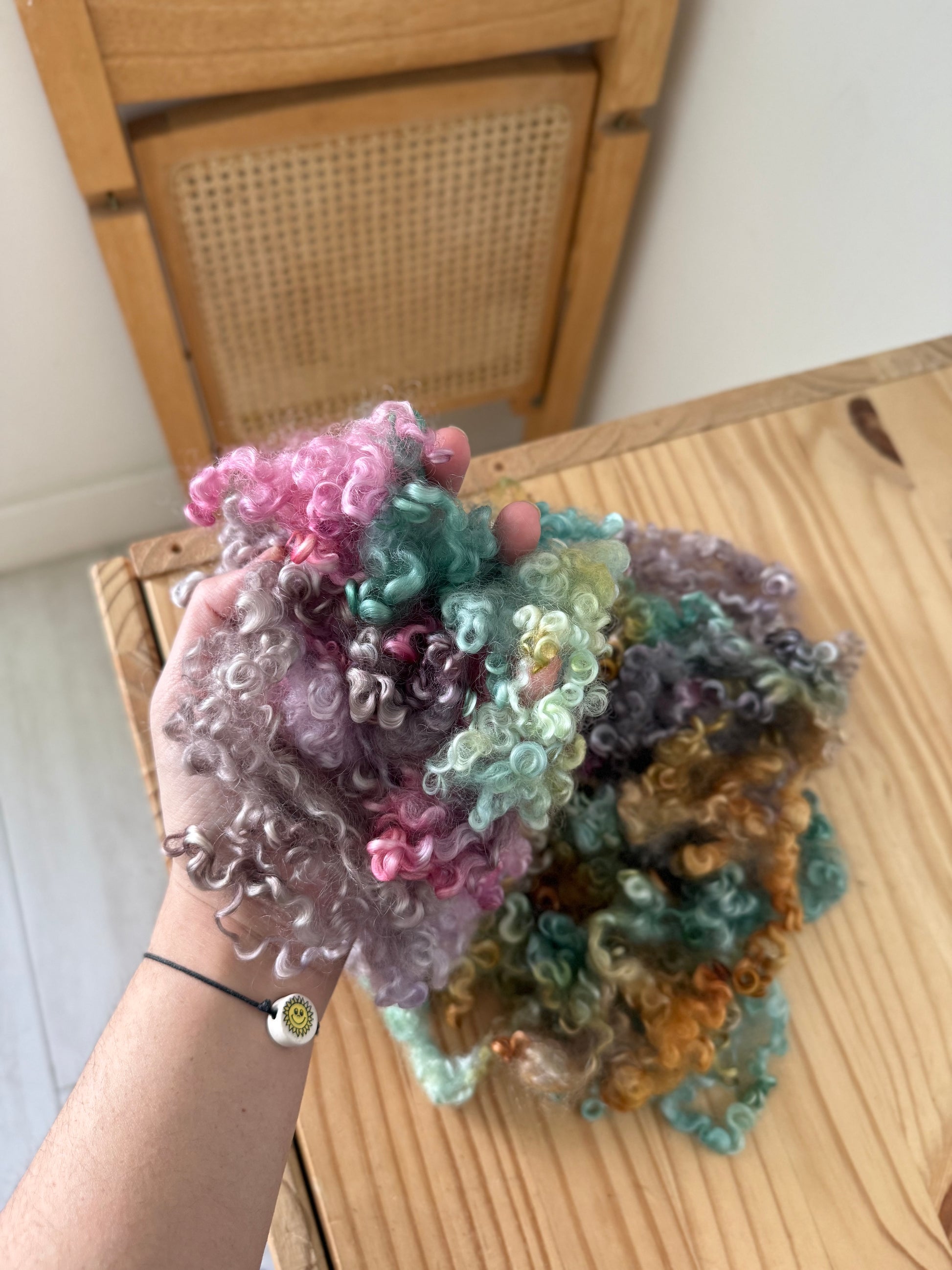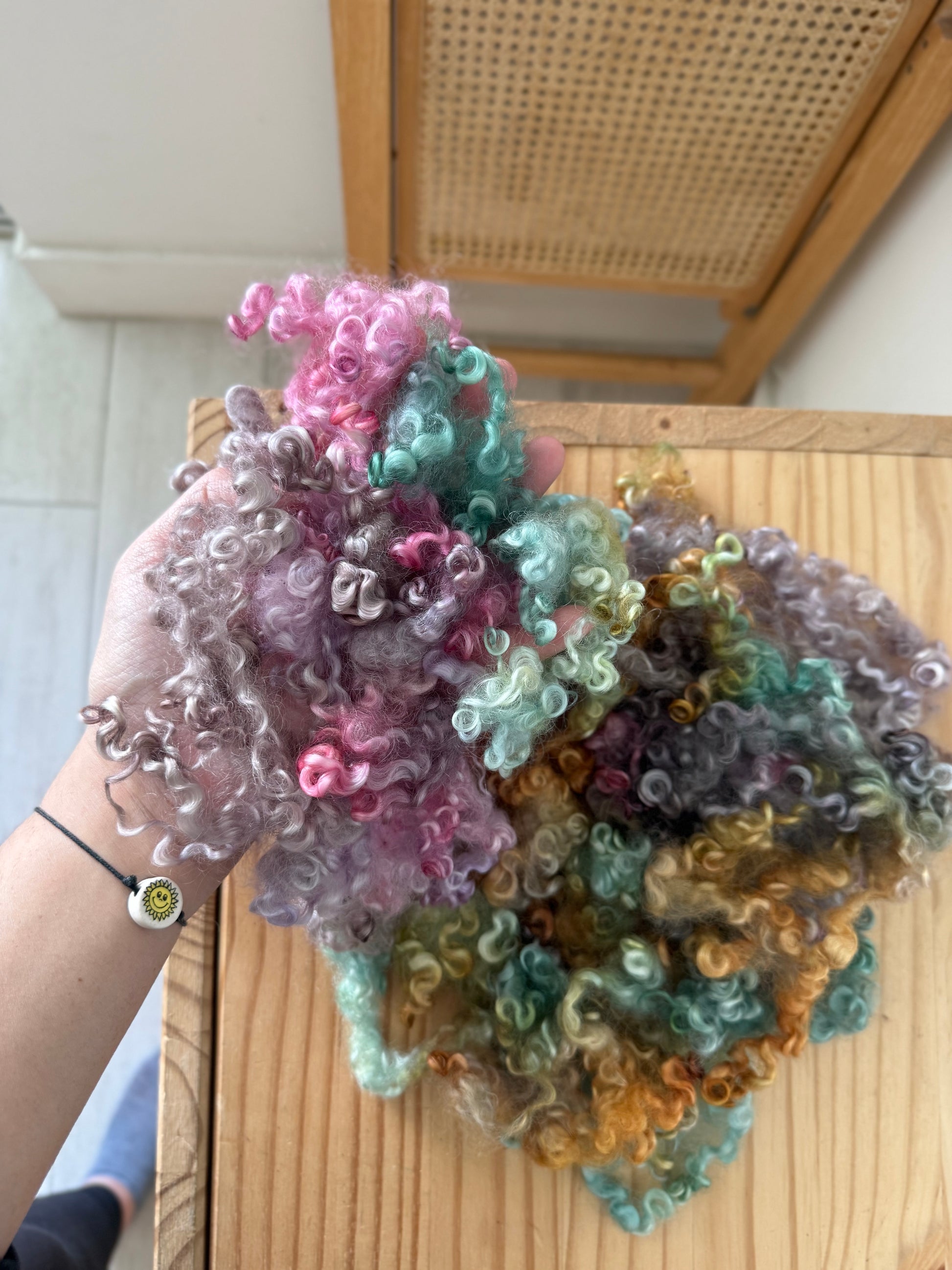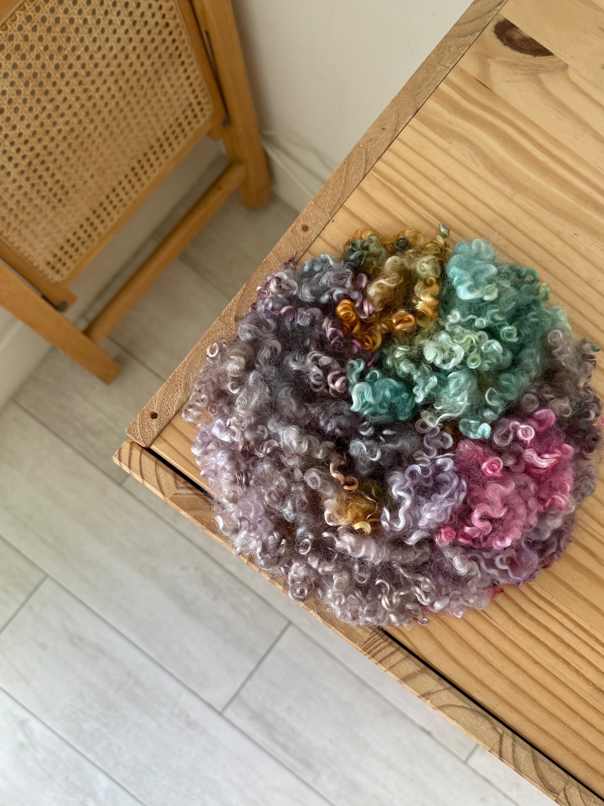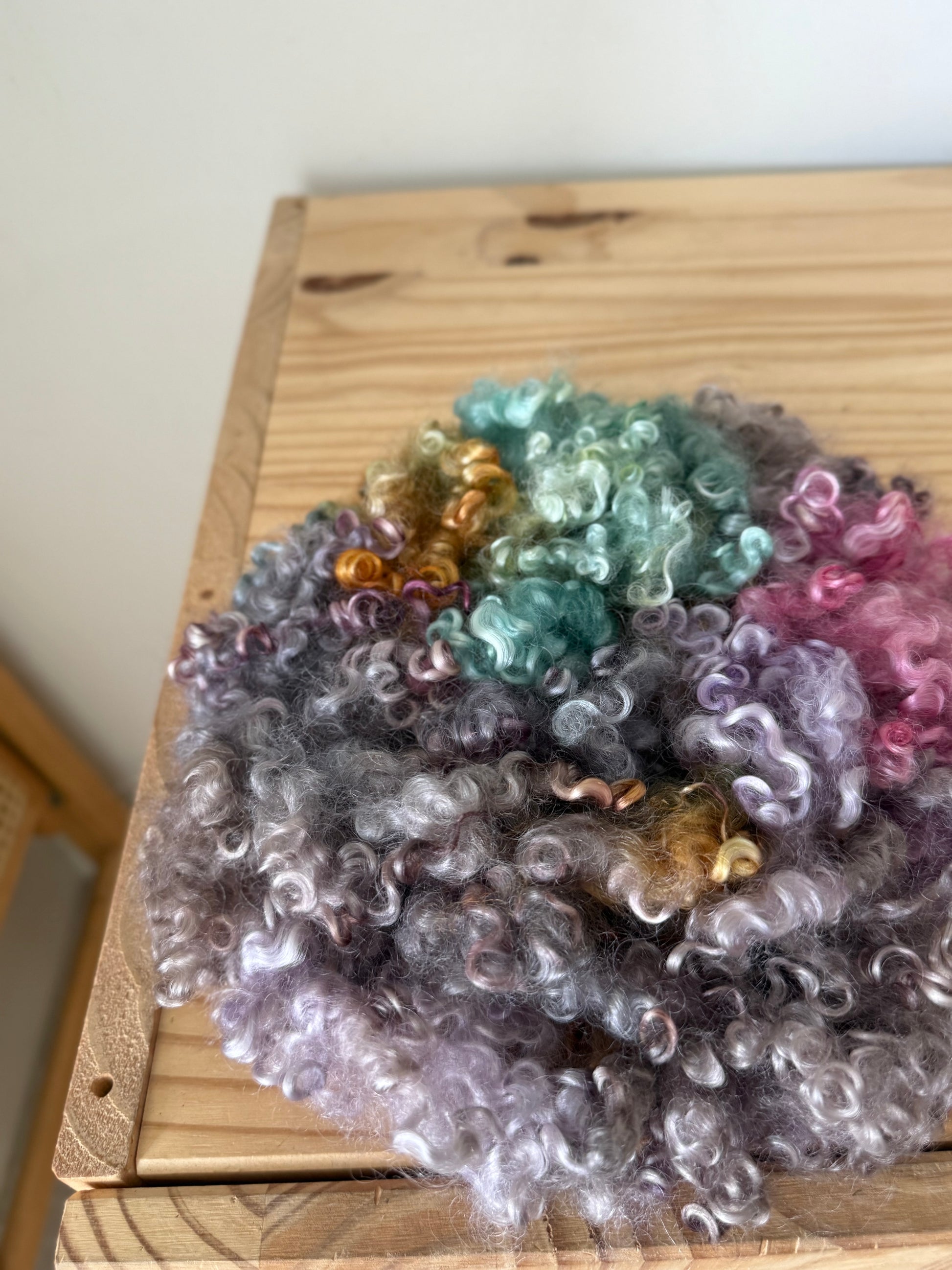 hand dyed wensleydale locks - beautifully structured curly locks with incredible shine and softness. These have been thoroughly washed and scoured of all dirt and vm. They are hand dyed with acid dyes in small batches with precise color application.
