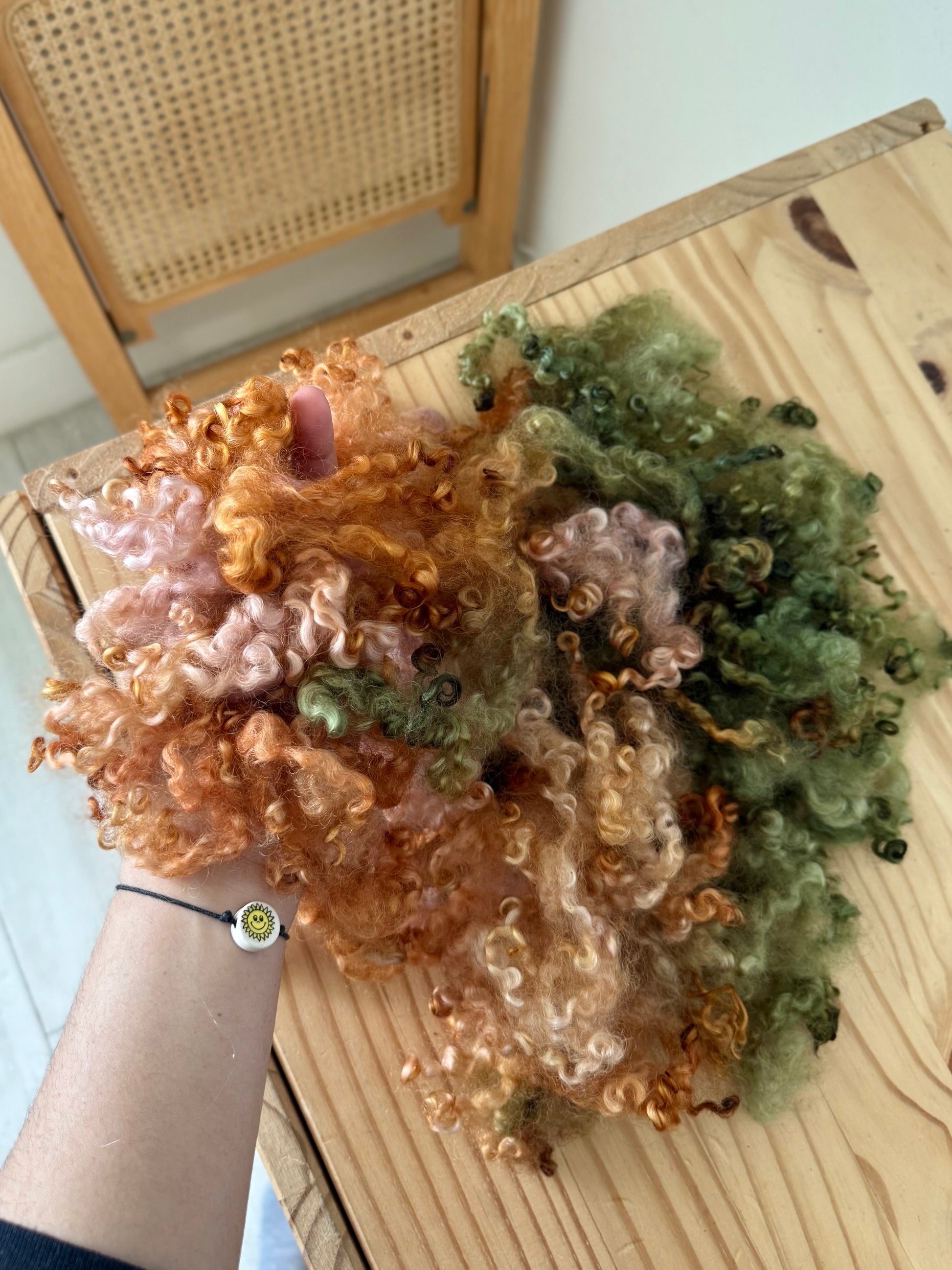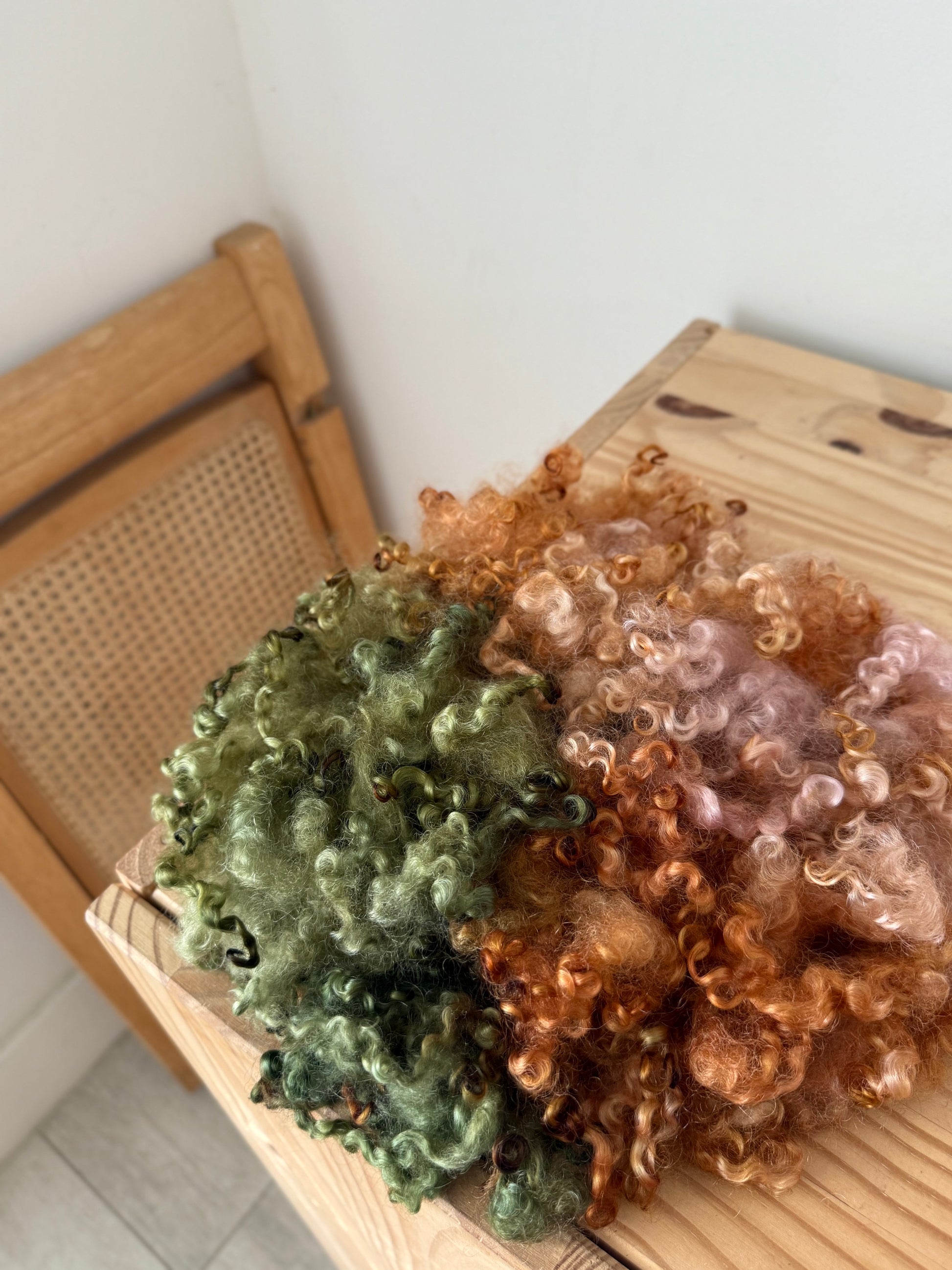 hand dyed wensleydale locks - beautifully structured curly locks with incredible shine and softness. These have been thoroughly washed and scoured of all dirt and vm. They are hand dyed with acid dyes in small batches with precise color application.